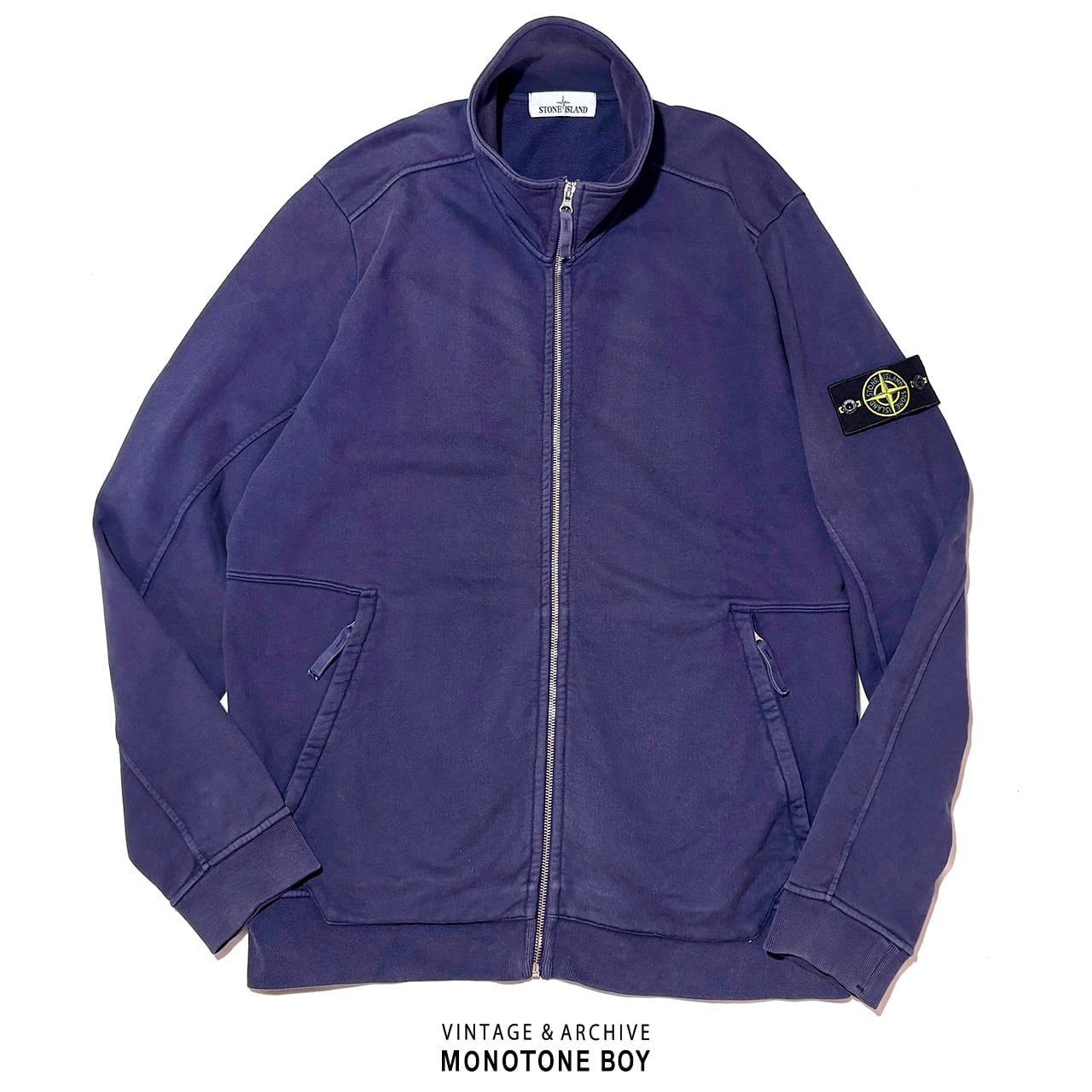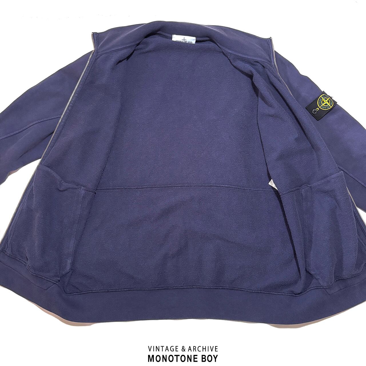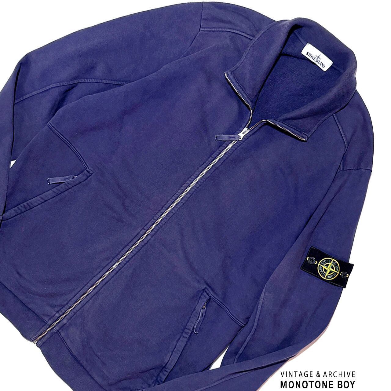 STONE ISLAND 2016SS HEAVY WEIGHT ZIP UP SWEAT SHIRT Sun faded navy blue ストーンアイランド フェードネイビー ナス紺 ジップアップ ドライバーズ スウェット