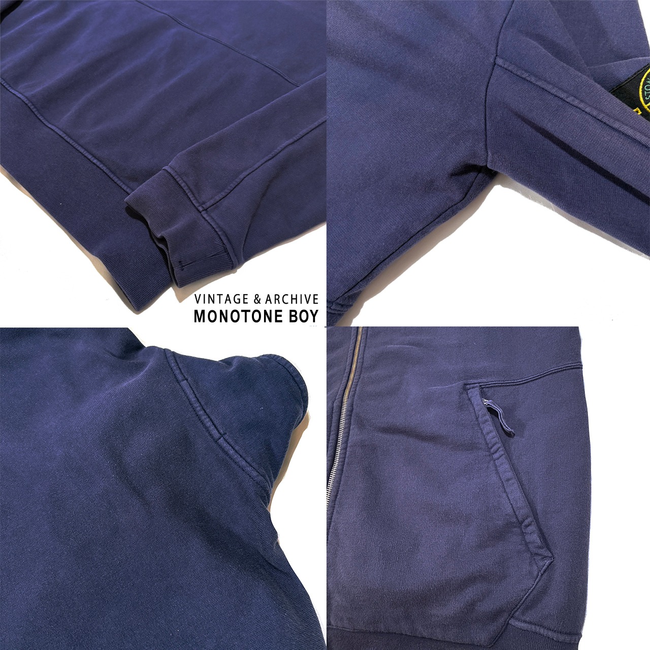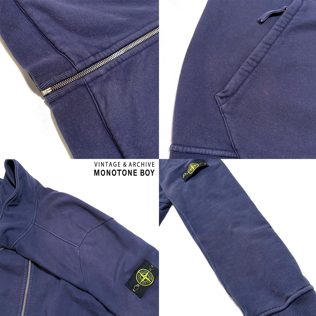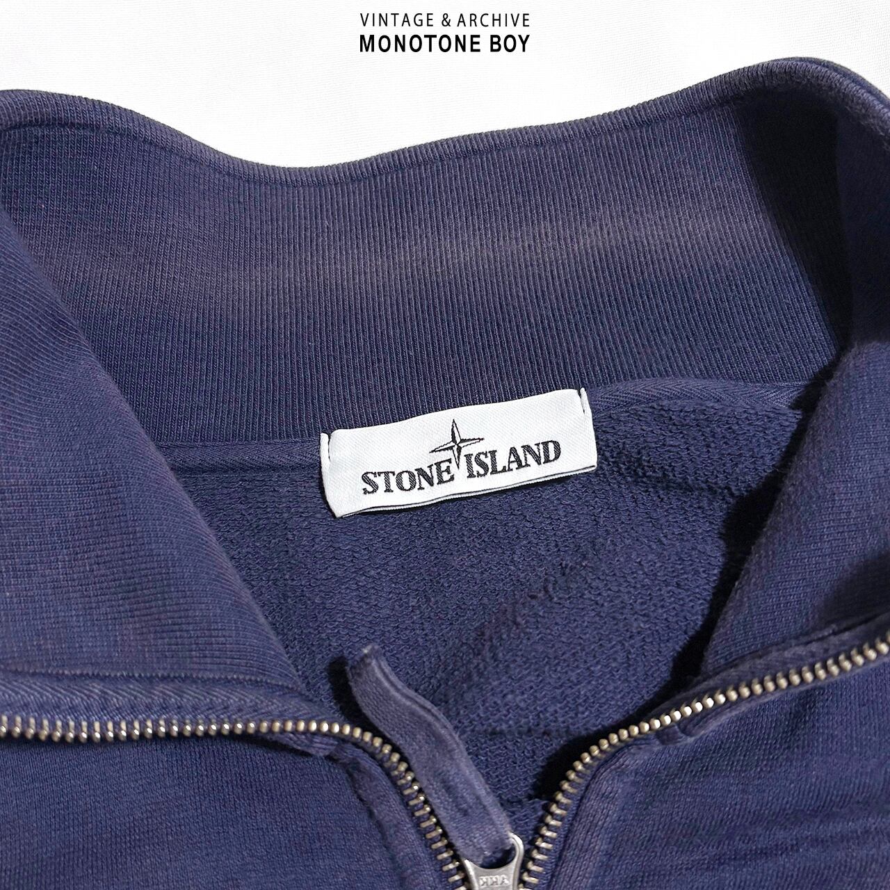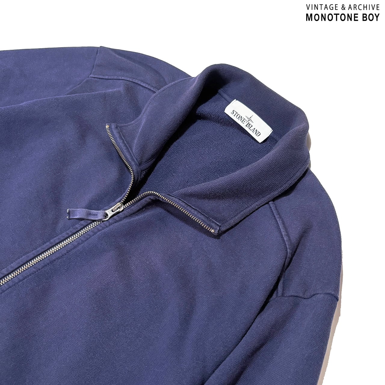 STONE ISLAND 2016SS HEAVY WEIGHT ZIP UP SWEAT SHIRT Sun faded navy blue ストーンアイランド フェードネイビー ナス紺 ジップアップ ドライバーズ スウェット