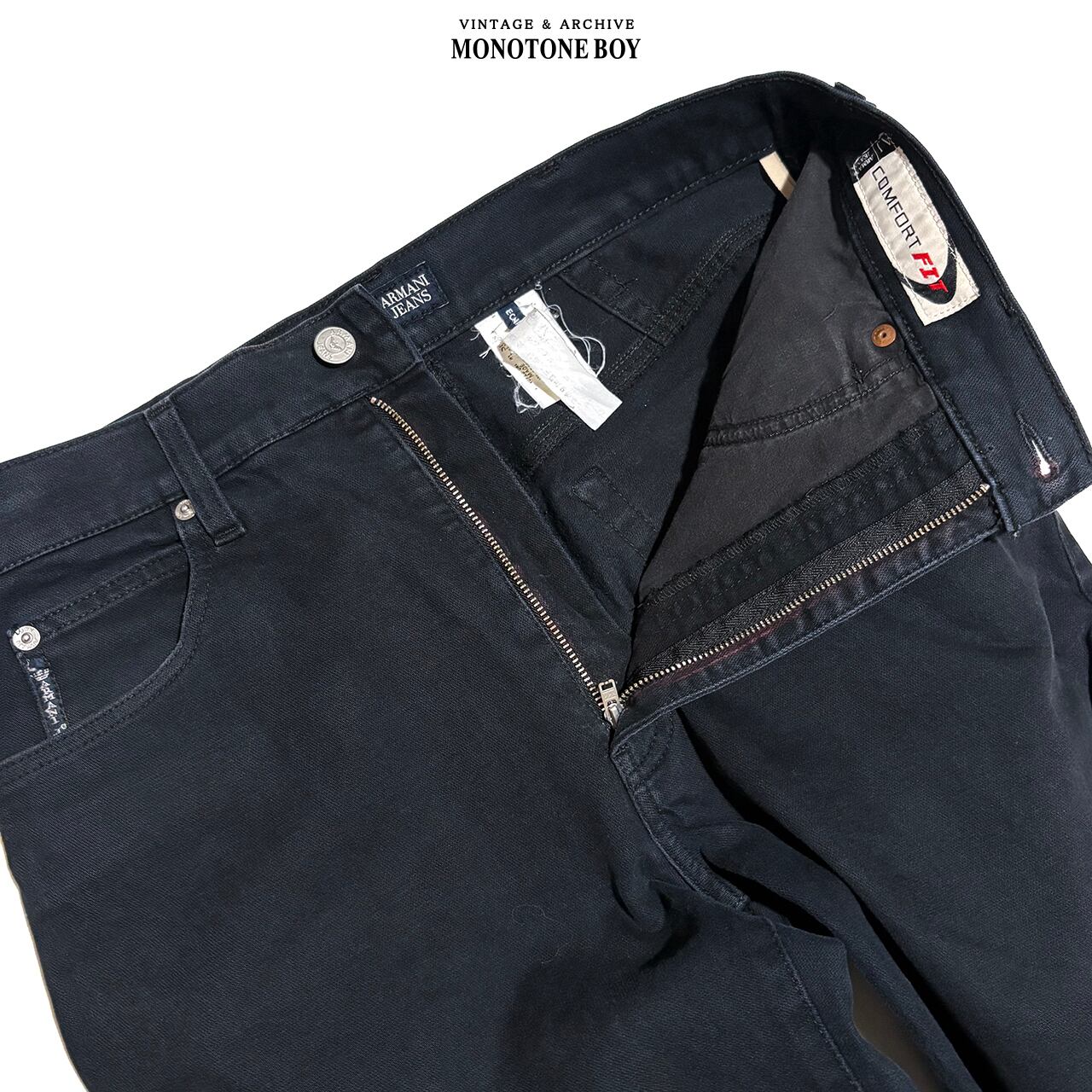 2000年代イタリア製、アルマーニジーンズのストレッチブラックパンツ。