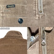 90年代、〈Diesel〉がアメリカンワークウェアを深く研究・再構築していた時代の希少なアーカイブ。ラギッドなワークディテールに、イタリア製らしい上質なコーデュロイ素材と深みあるトーンが融合した完成度の高い一着です。