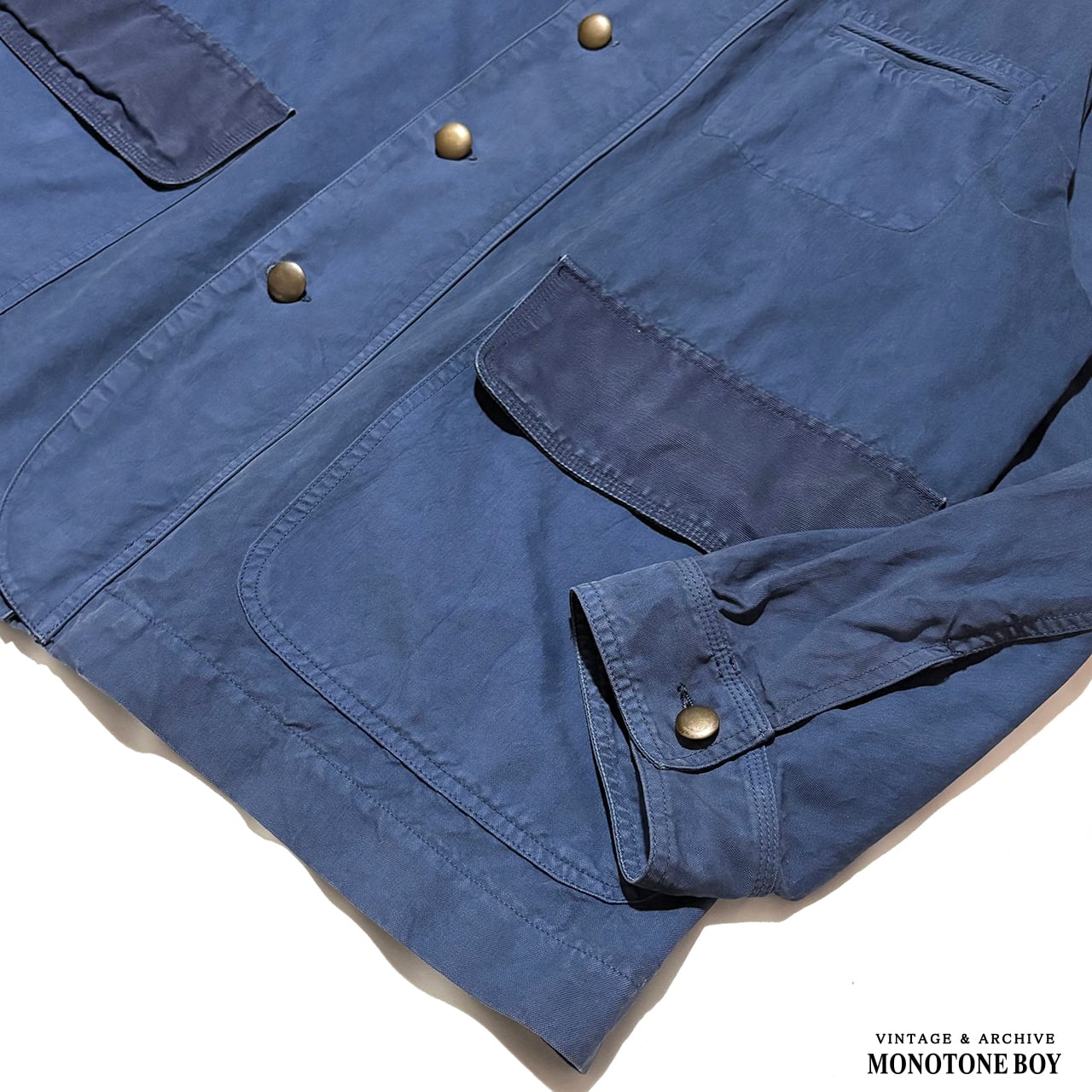 全体ガーメントダイによる褪色やスレなどあります。袖口や前身頃は少しくすみや薄汚れがあります。襟周り少し色落ち。フラップポケットの一つのボタン部分に解れ。胸に押し跡のようなあたり部分。手首付近にすこし薄汚れ。サイドベンツのスナップボタンは開閉は可能ですが非常に硬くなっています。30年前の年代物の割に全体非常に綺麗で良い状態です。これからも長く愛用いただける状態。気になる部分などは写真でご確認いただけます。
