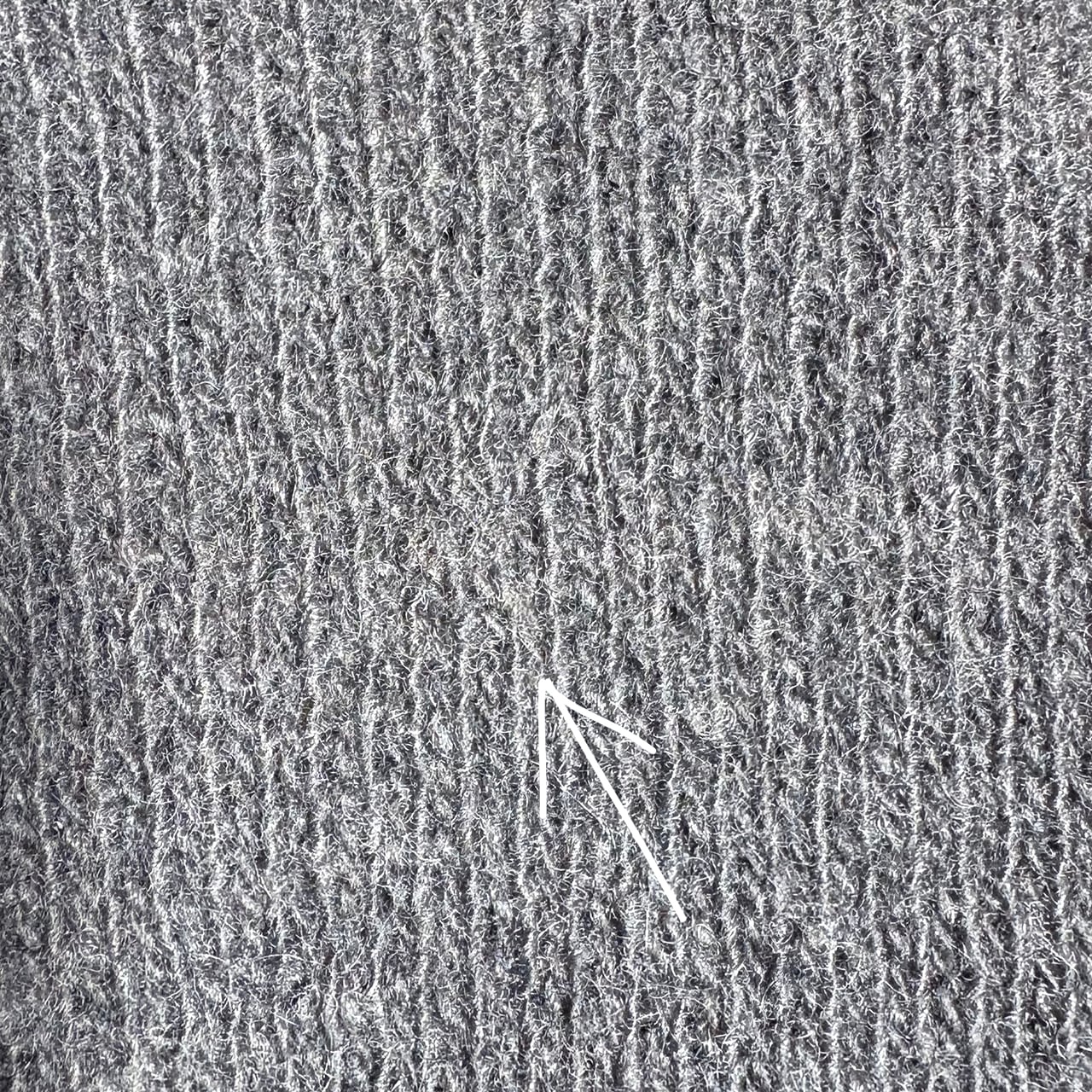 フロント下部に近くでよく見てもわからないくらいの極小の小さな補修跡(最後の写真)。全体ニット特有に毛羽立ちと少しの毛玉感あります。袖の折り目が色褪せ。全体ふわふわで柔らかくとても良い状態です。これからも長く愛用いただけます。気になる部分などは写真でご確認いただけます。
