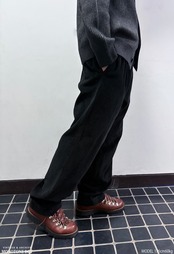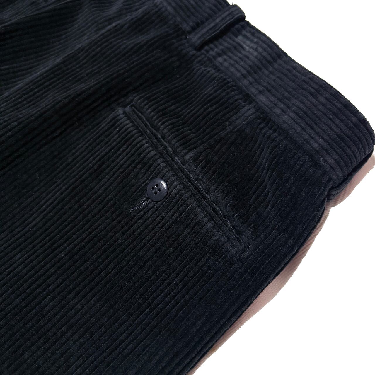 中畝でふっくらした高品質なコーデュロイ生地、タック入りでゆとりある腰回り、テーパードした裾、大人の余裕を感じさせる冬におすすめのパンツです。
