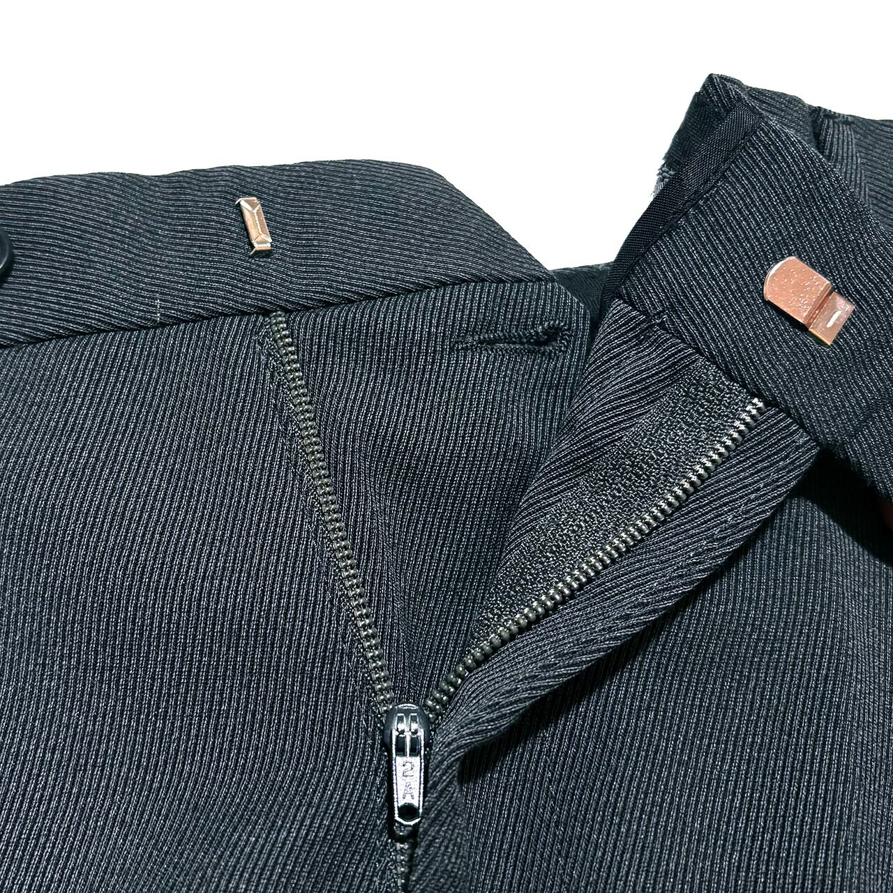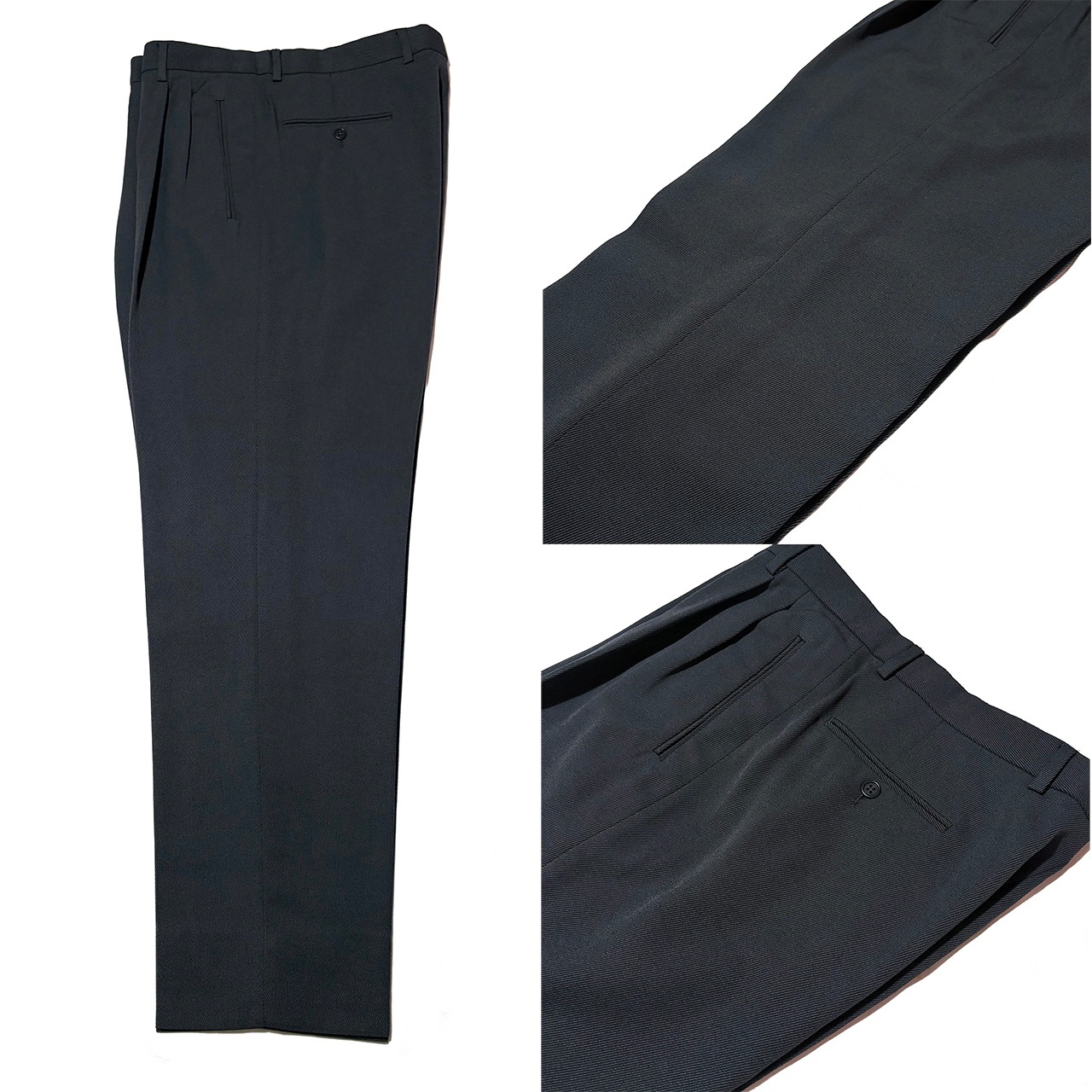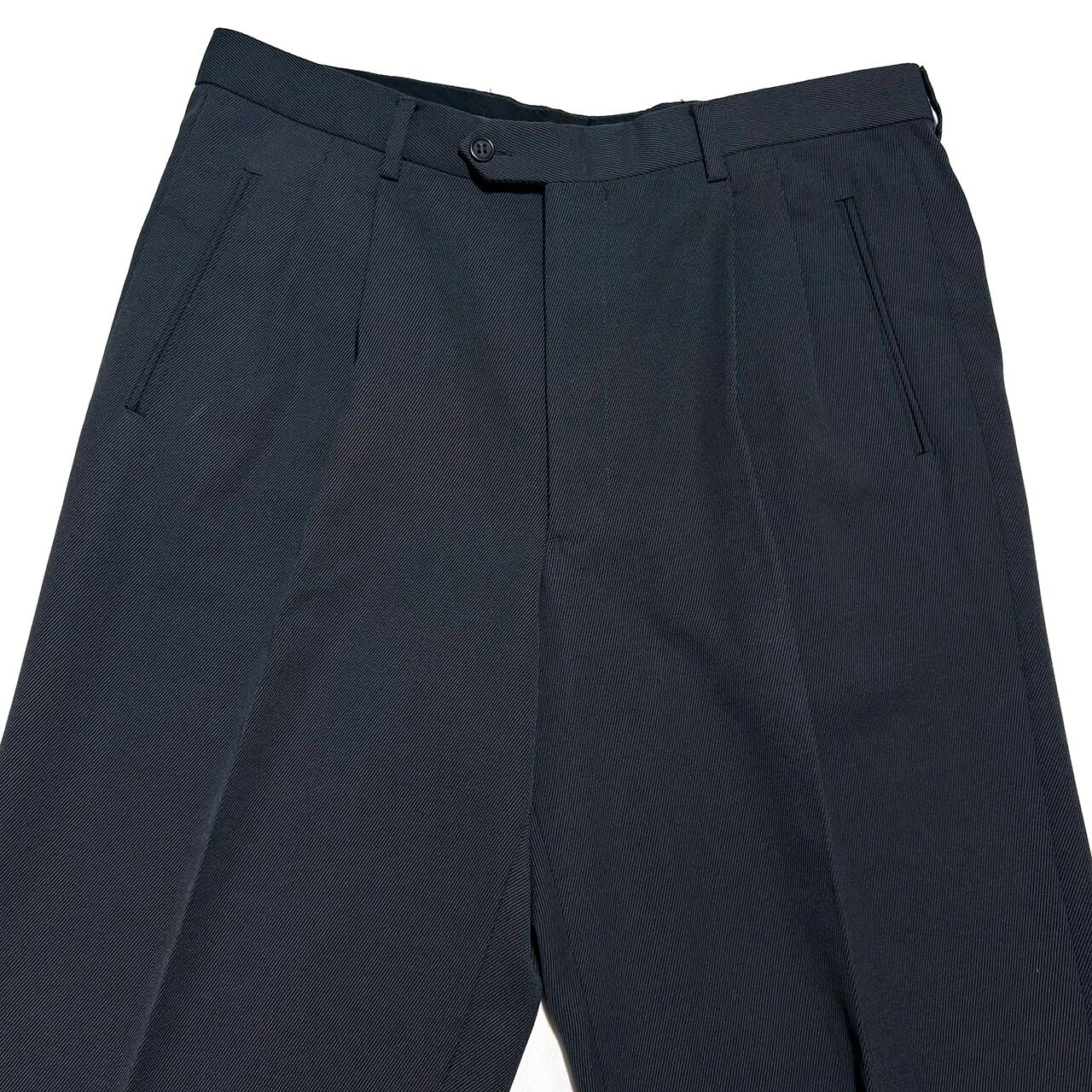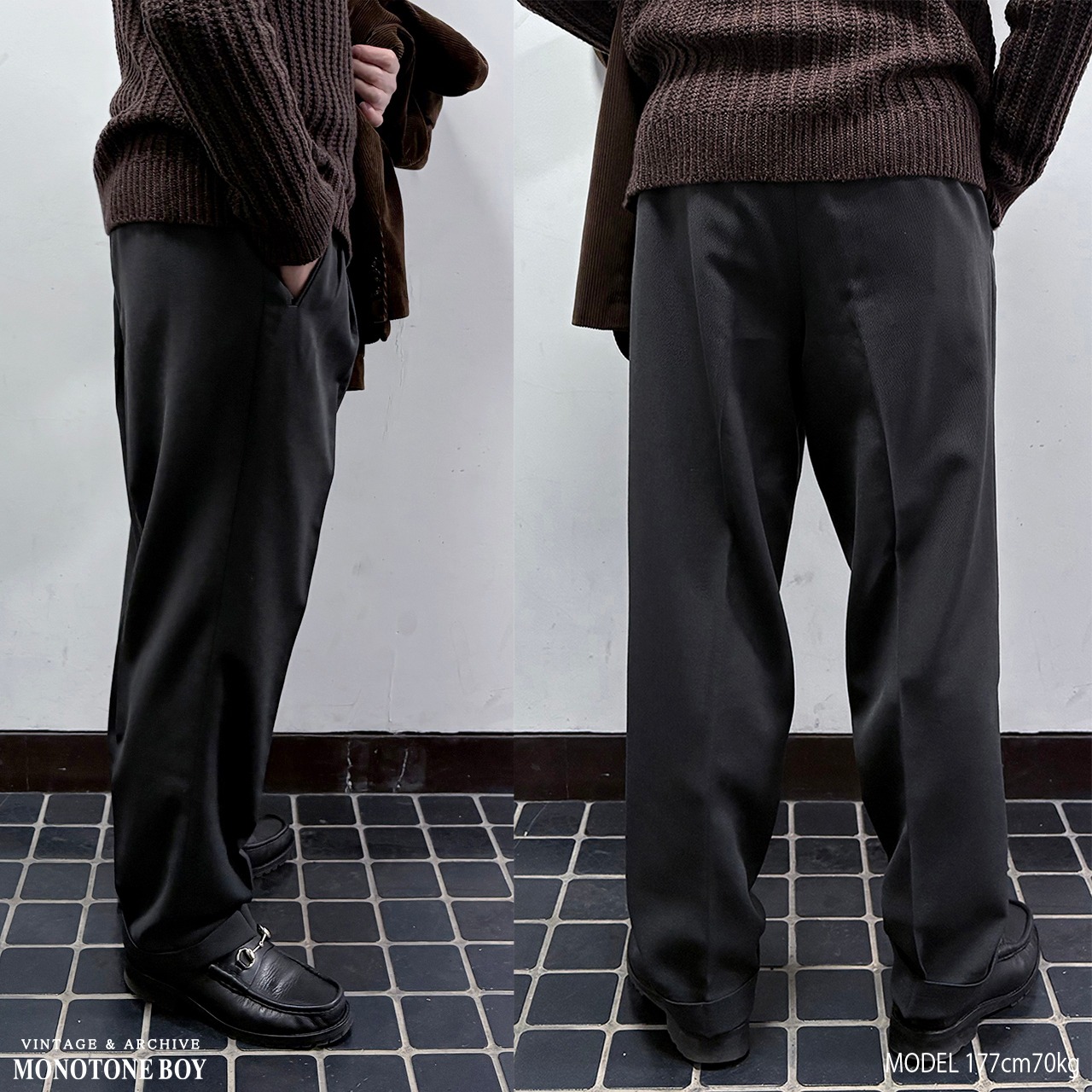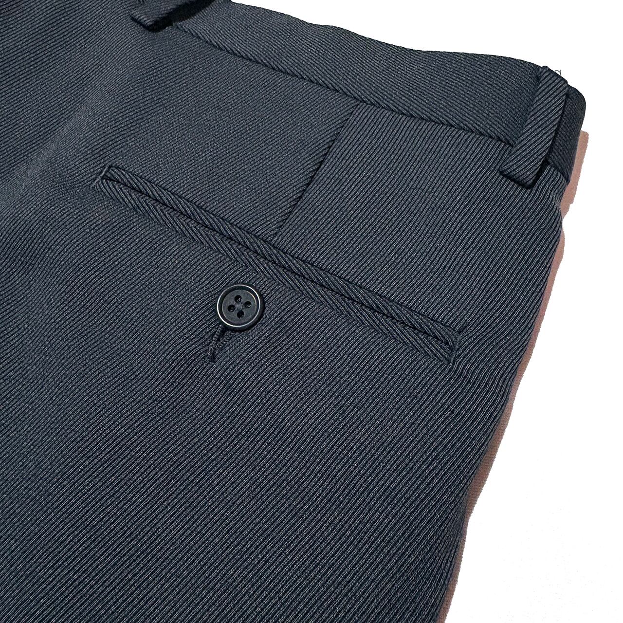中厚のしなやかなで美しいドレープを生み出すウールブレンドツイル生地はシワになりにくく耐久性もある実用性の高い一本。秋冬の重厚なアウターに負けない重厚感と落ち着いた少しだけグリーンを感じるダークグレーで冬の大人の装いを完成させる。