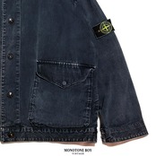 カラーはSTONE ISLAND独自の染色による深みあるブラックに限りなく近いダークネイビー。光の角度によってダークネイビーからフェードブラックへと変化する、奥行きある色調を持ちます。着込むほどに経年変化で陰影が増し他にはない深みと個性が味わえます。